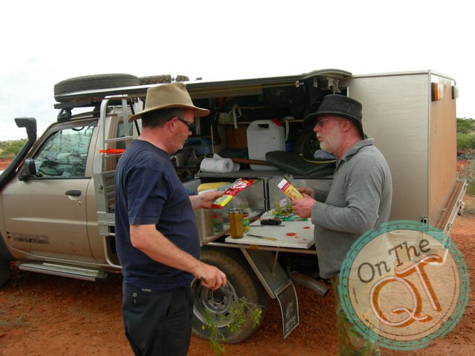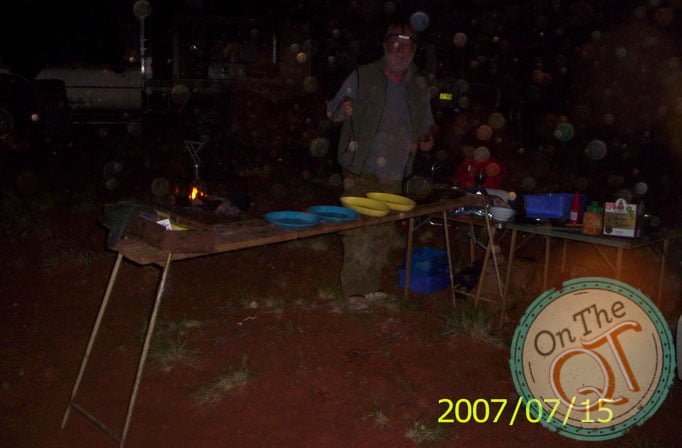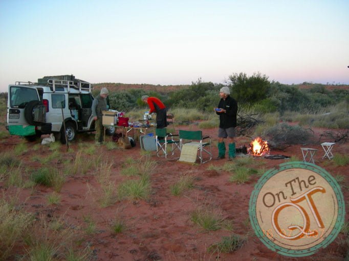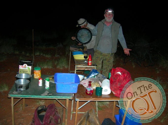 Progress is is slow and we have to head inland as the lake is too soft. By 4.15 we are 14km behind where we should be today and unfortunately it looks like it may rain. Drops are falling on the windscreen. We come across 2 more lots of camels. One group had about 10 camels in the group. A spectacular sight. They have never heard noise and they are as inquisitive about us as we are of them. When we get with 100ft of them they run off. We hit camp time and we find a suitable spot. Cloud cover indicates it is going to rain. It is quite mild. The fire is got going and we all help gather timber. Dinner is prepared of beef stroganoff and tagliatelle and at this stage we are repeating the menu from last week. Some of the guys take extra precautions in the event of it raining. One goes under the rear of his vehicle and the other puts up a 45 degree tent against the front of the same vehicle. He puts his swag then in front of the vehicle under the made shift tent. No stars tonight and it is very warm. I leave the canvas of my sleeping bag open and as I feel too warm. I wake some time during the night to see all the stars above me switched on and I am frozen with the cold. I quickly pull over my canvas and get my head in under the canvas and go back to sleep.