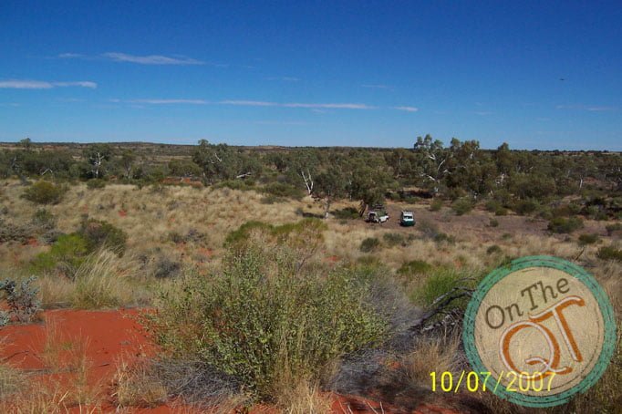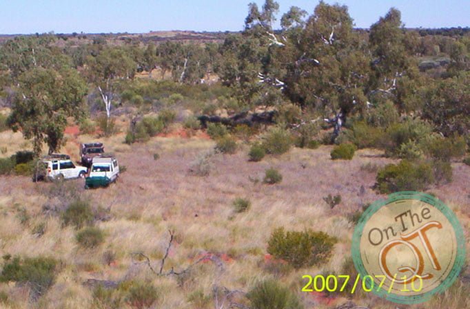 Off we go at 10AM. We go through 2 dried river beds called creeks. Big drop down one side and up the other side. Very exciting. Stopped for a coffee break under a large gum tree. Quick coffee and off we go. I travel in Nick’s 4.2L Nissan which is new and has all the gadgets one needs. Compressor, freezer, fridge, computer and global navigation system are all onboard. We come to our last track and now we are on our own. We come to our first creek which we have to cross(dried up river). We walk for 10 minutes or so to find the best crossing spot. All three vans are across within 30 minutes or so. Tyres are left down from 60lbs pressure to 30lbs and once across they are pumped to 60lbs again. Stop for a quick lunch. The flies torment me and are the most annoying part of the trip!!
